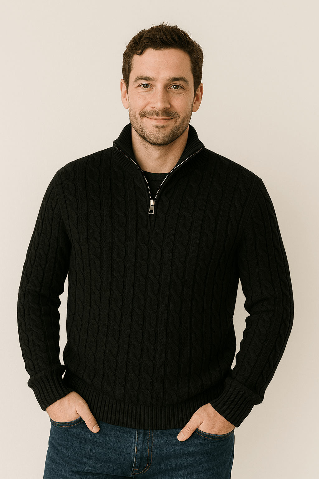 Kabelstrickdesign für einen klassischen, eleganten Look.