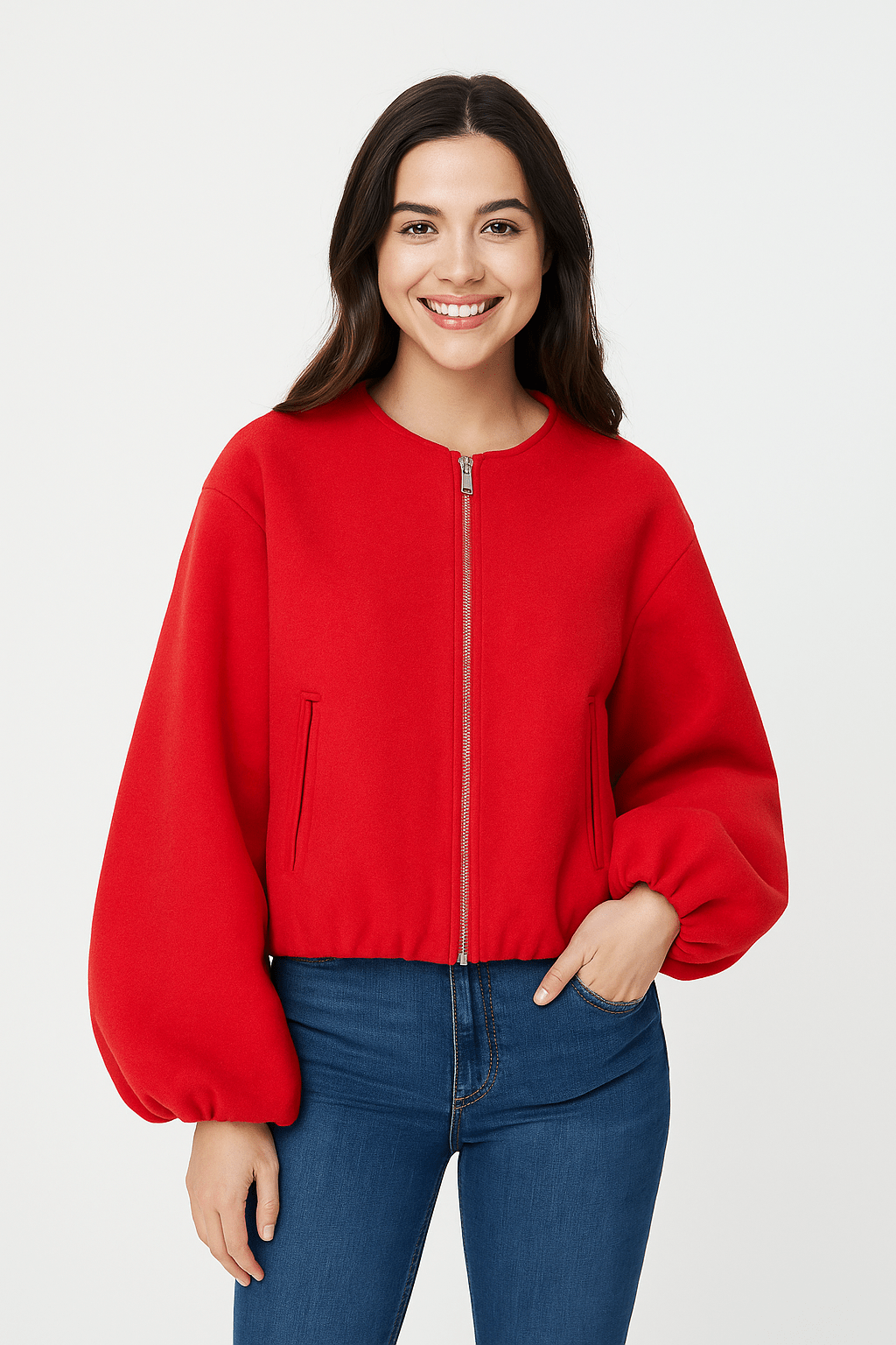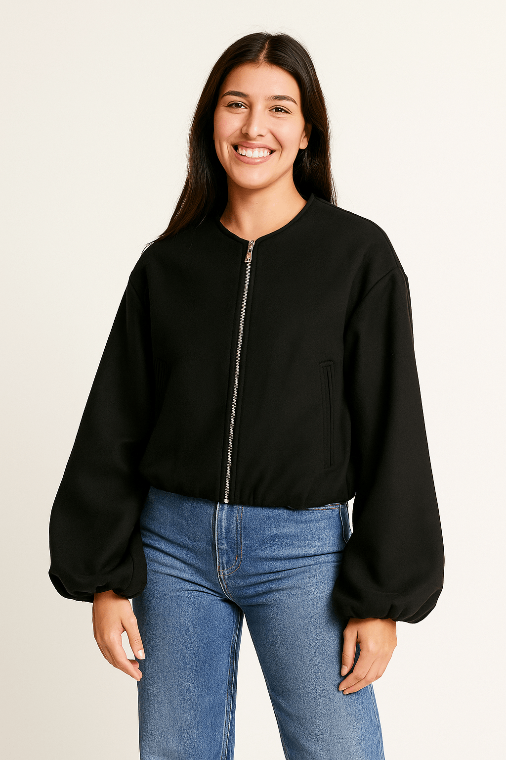 Setze modische Akzente – mit der Bianca Kurzjacke Ballonärmel Reißverschluss